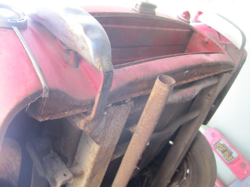 Pas de corrosion malsaine. Le moteur tourne , l 'auto est complète avec ses side screens . Nous nous occupons des papiers FFVE et de l'immatriculation en France. |