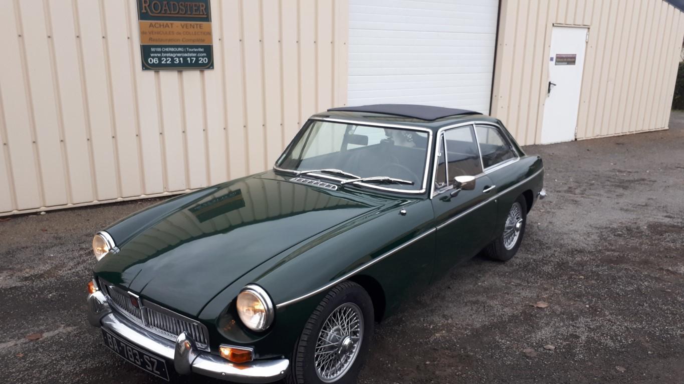 Belle MGB GT vert anglais ,équipée d'un overdrive et d'un toit ouvrant webasto, sellerie moquettes en bon état, echappement inox, roues a rayons ,véhicule très bien entretenu. -
