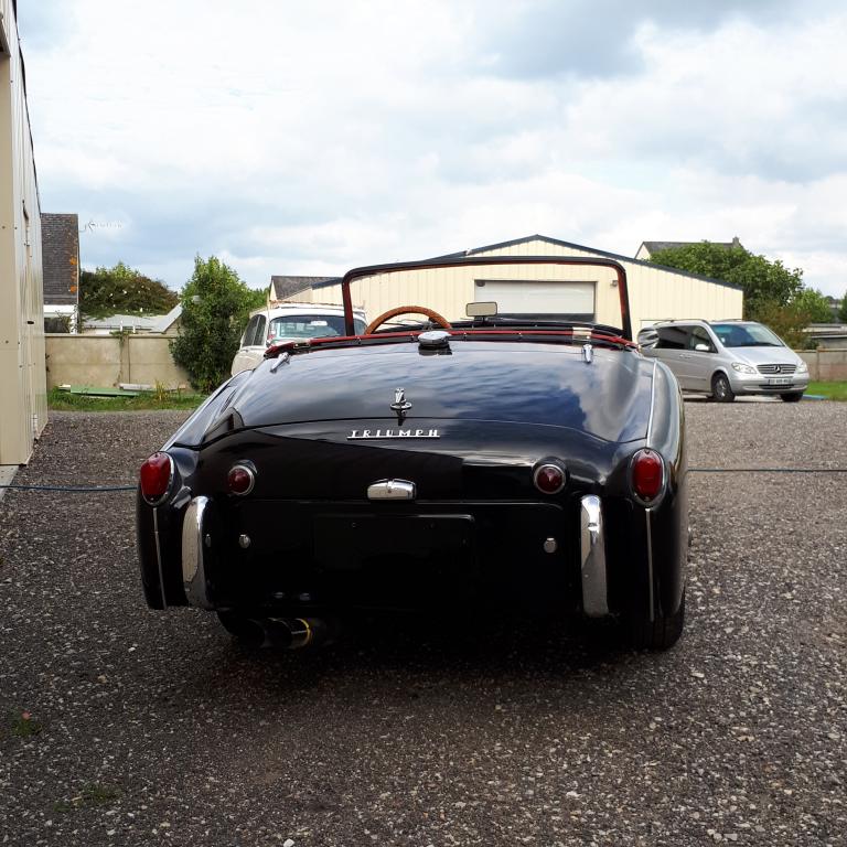 Historique : La série TR de Triumph arriva en 1953 avec la TR2. La TR3 quant à elle arriva 2 ans après en 1955, et la TR3A en 1958.La TR3B était destinée uniquement au marché américain. En effet, les acheteurs outre-atlantique avaient du mal à quitter le modèle TR3 pour la TR4. Donc la TR3B fut produite en 1961, en parallèle à la TR4. Cette TR3B bénéficia donc du moteur (2100 cm3) et boîte de vitesse (4 rapports synchronisées) de la TR4.