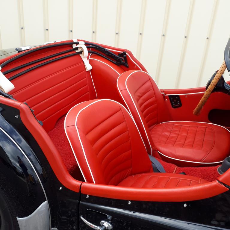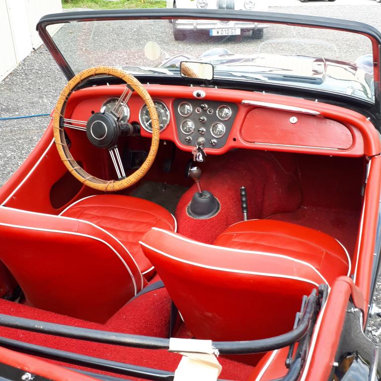 boite synchro , peinture et sellerie refaite , excellent chassis , excellent planchers . Très belle auto , prête pour rouler . Historique : La série TR de Triumph arriva en 1953 avec la TR2. La TR3 quant à elle arriva 2 ans après en 1955, et la TR3A en 1958.La TR3B était destinée uniquement au marché américain. En effet, les acheteurs outre-atlantique avaient ... |