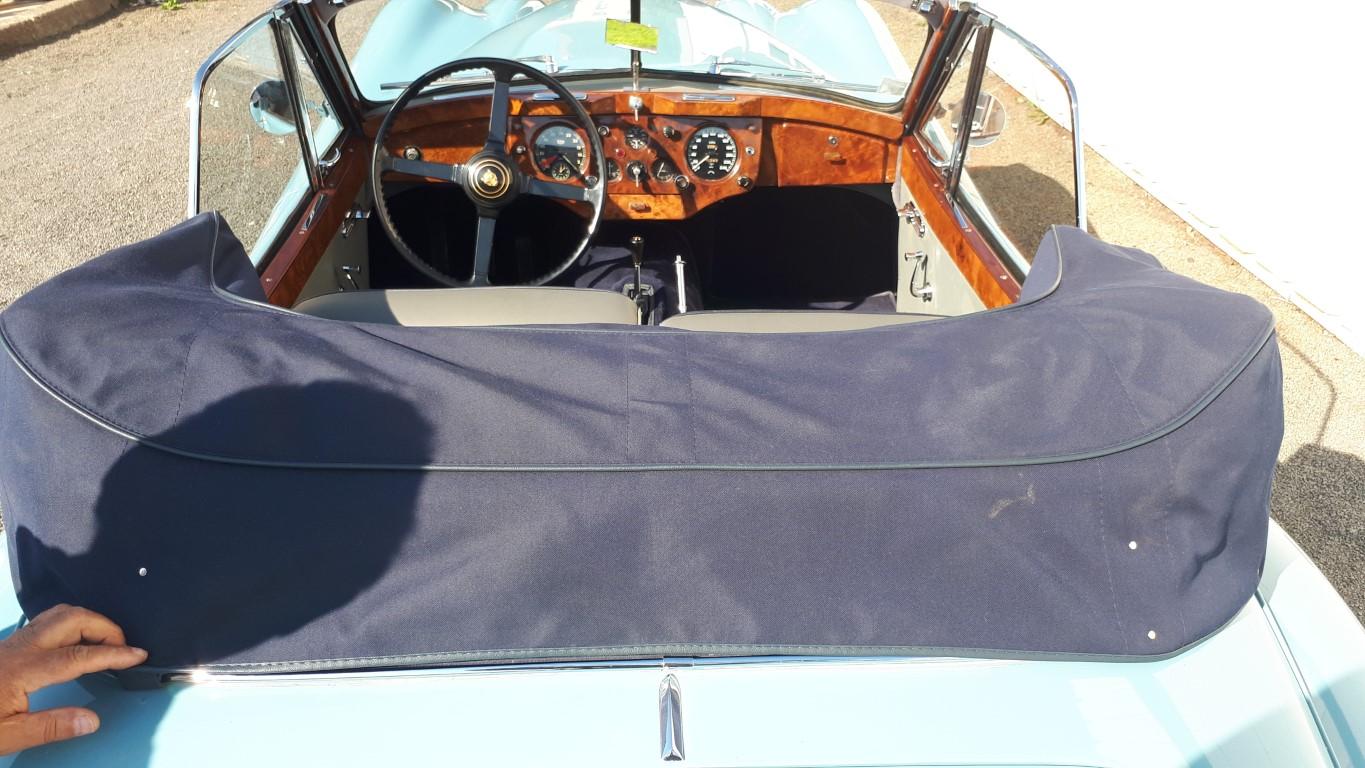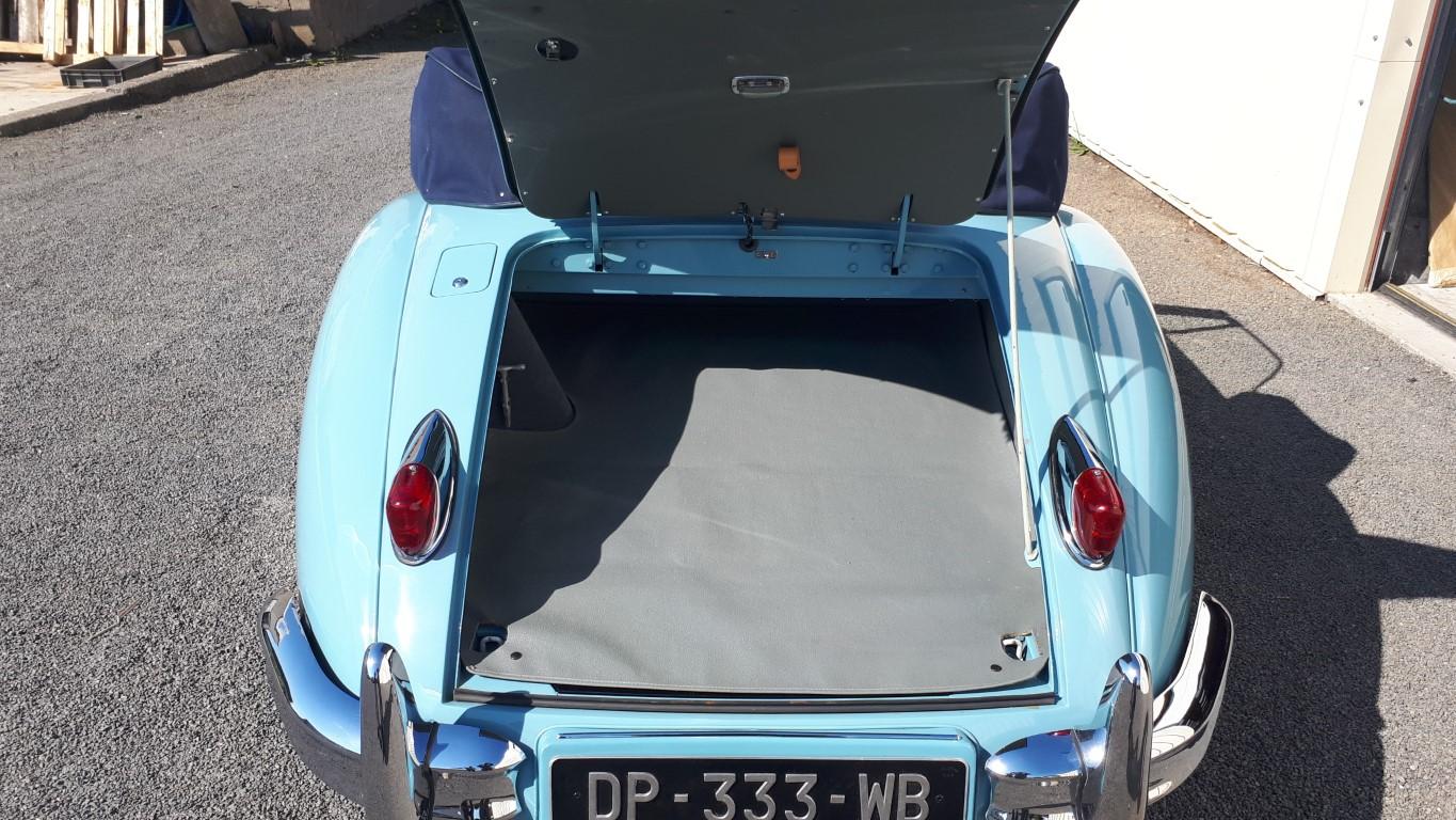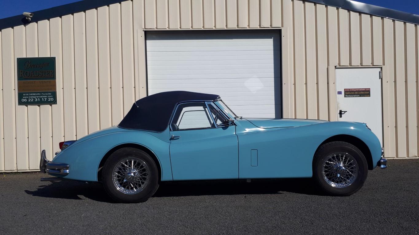 cette jolie JAGUAR XK 140 DHC , TYPE C, overdrive,matching numbers, a été restaurée de A à Z , moteur , boite , pont, carrosserie , peinture, sellerie cuir , capote alpaga , tableau de bord en ronçe de noyer , roues a rayons chromées , pneus michelin, allumage electronique,ventilateur electrique,vase d expension, train avant , freinage etc.. -