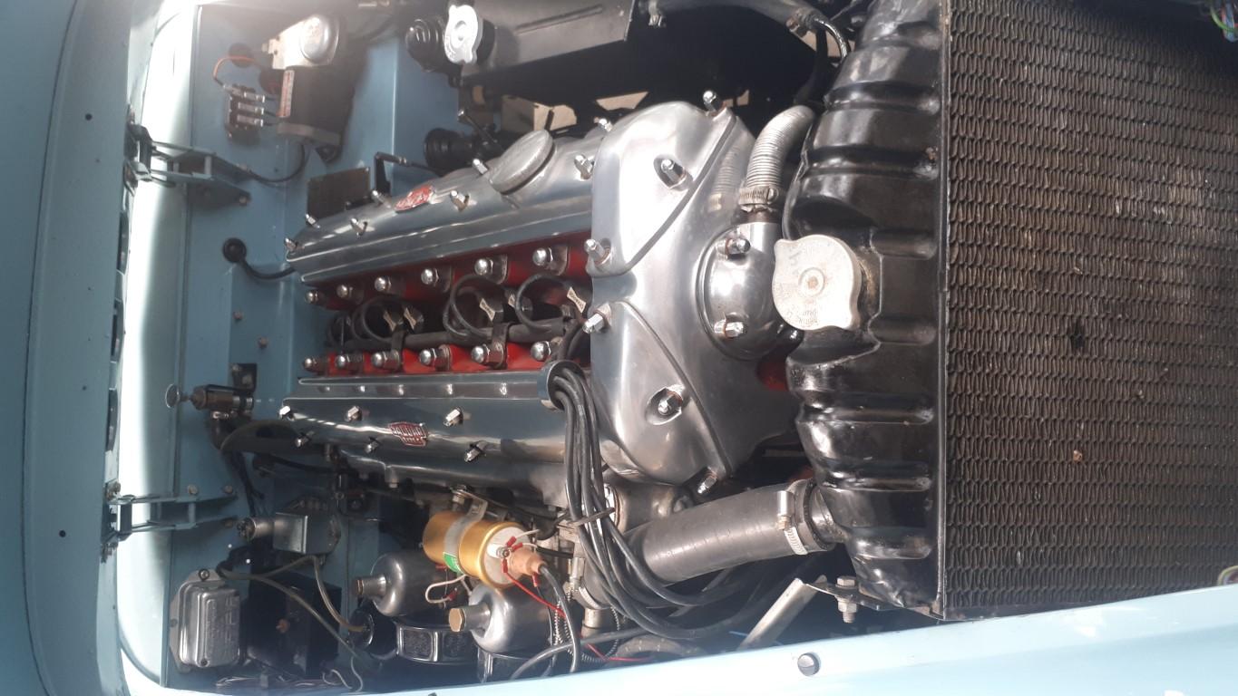 | cette jolie JAGUAR XK 140 DHC , TYPE C, overdrive,matching numbers, a été restaurée de A à Z , moteur , boite , pont, carrosserie , peinture, sellerie cuir , capote alpaga , tableau de bord en ronçe de noyer , roues a rayons chromées , pneus michelin, allumage electronique,ventilateur electrique,vase d expension, train avant , freinage etc..