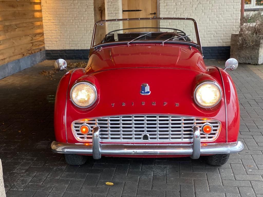 | Véritable TR3B TCF avec son moteur TR3B , ancienne restauration , dans son jus , très saine , bonne mécanique d' origine.