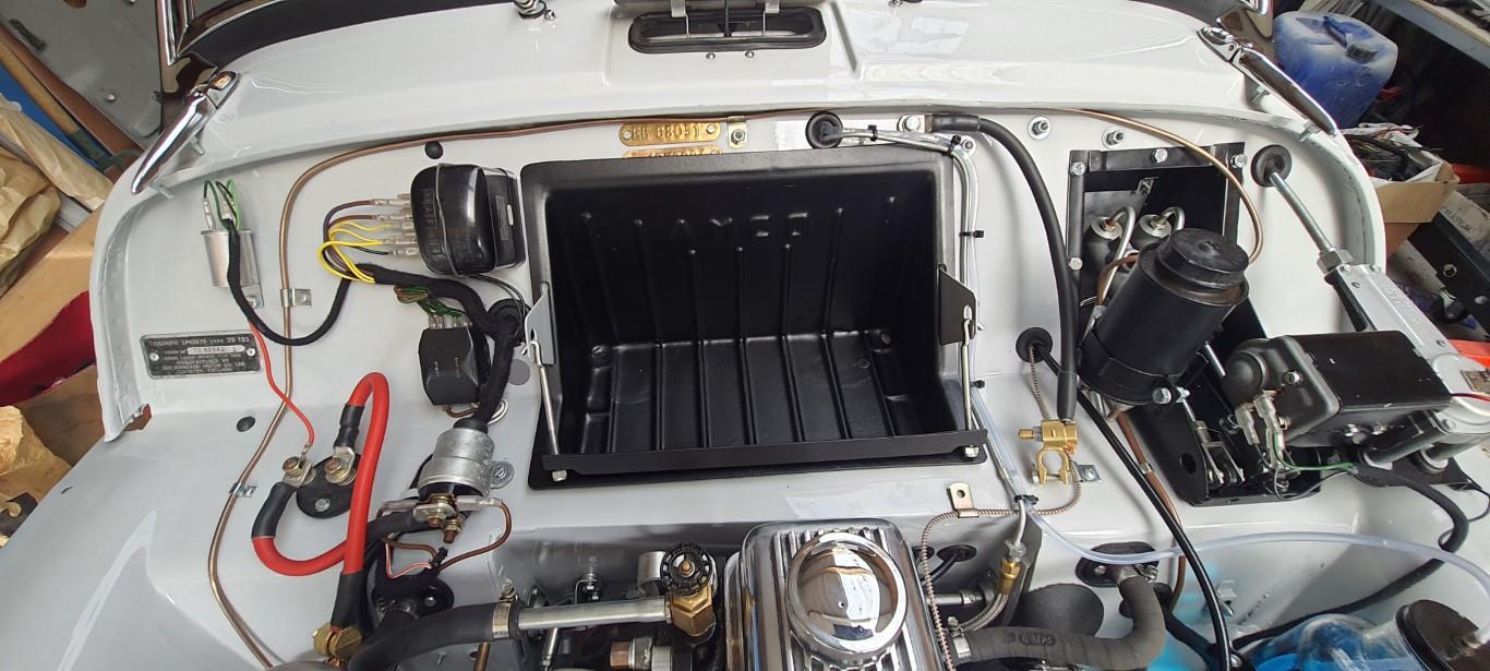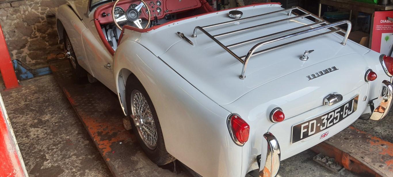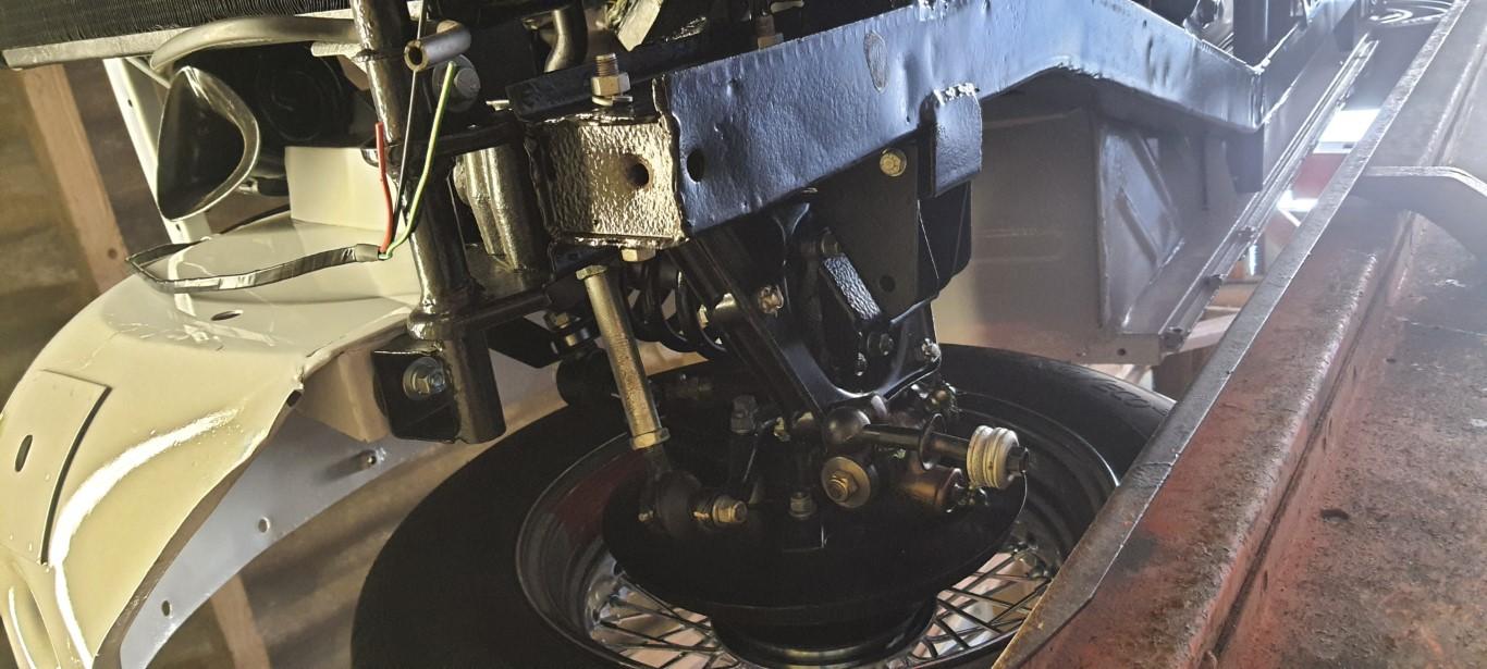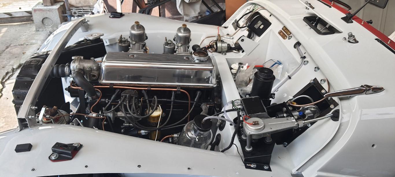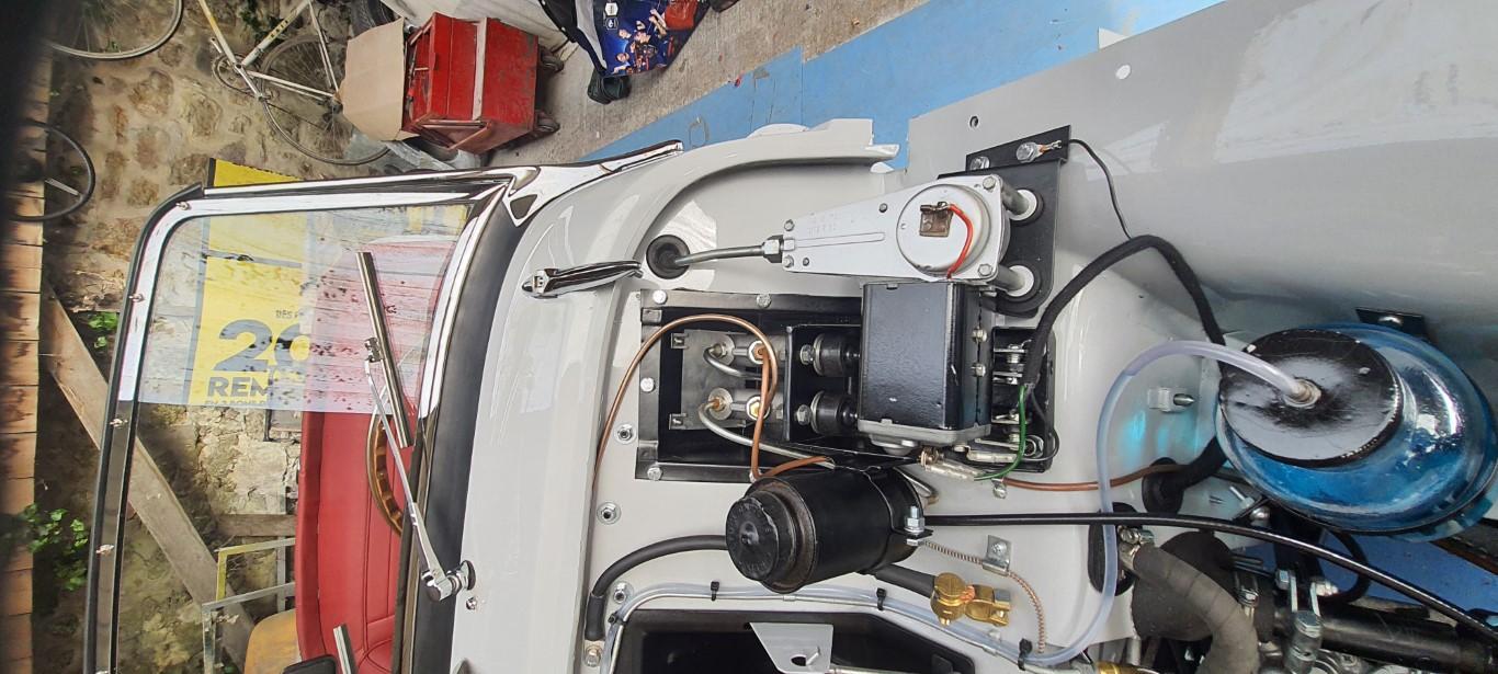 moteur et boite overdrive. sellerie , chromes , carrosserie , peinture , joints , echappement , freins, train avant, pneus, etc... en cours de remontage. etat concours. |