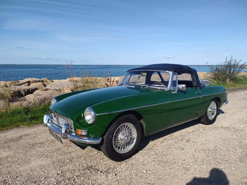 | l ' atelier BRETAGNE ROADSTER, spécialisé dans la vente et la restauration de véhicules de collections depuis 30 ans , vous propose cette jolie MG B Roadster vert anglais de 1967 , intérieur noir , roues a rayons.